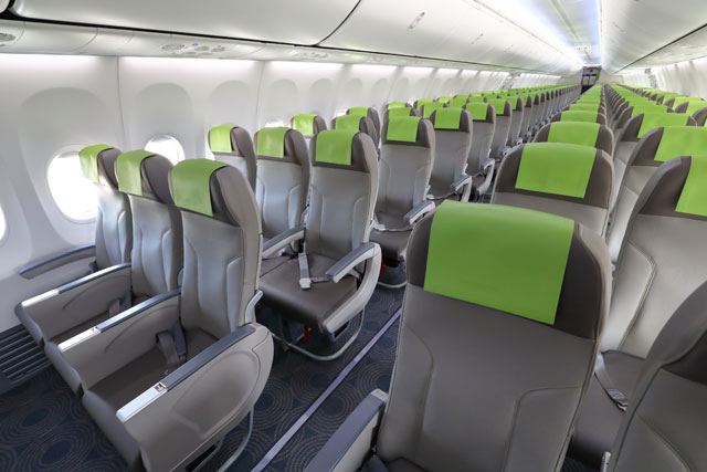 素材と製法を変え消臭効果が向上したカーペットを採用したソラシドの737-800新仕様機=18年10月31日 PHOTO: Masahiro SATO/Aviation Wire