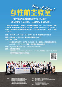 一般社団法人・日本女性航空協会(JWAA)と公益社団法人・日本航空機操縦士協会(JAPA)、日本航空技術協会(JAEA)、一般社団法人・日本航空宇宙工業会(SJAC)、全日本航空事業連合会は、12月16日に女性限定の航空教室「Yes I Can!!」を東京・新橋の航空会館で開催する。