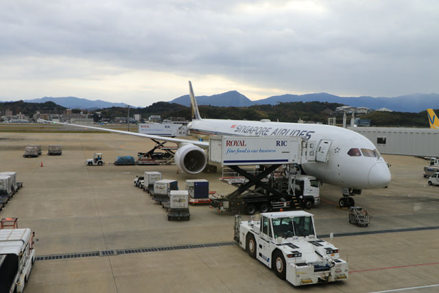 9日の初便は、SQ656便(787-10、9V-SCC)が乗客321人を乗せて福岡に午前8時1分着。折り返しのSQ655便は満席となる337人を乗せ、午前9時41分にシンガポールへ向けて出発した。