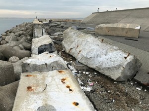 護岸が損傷した関空島(関西エアポート提供)