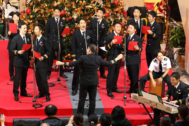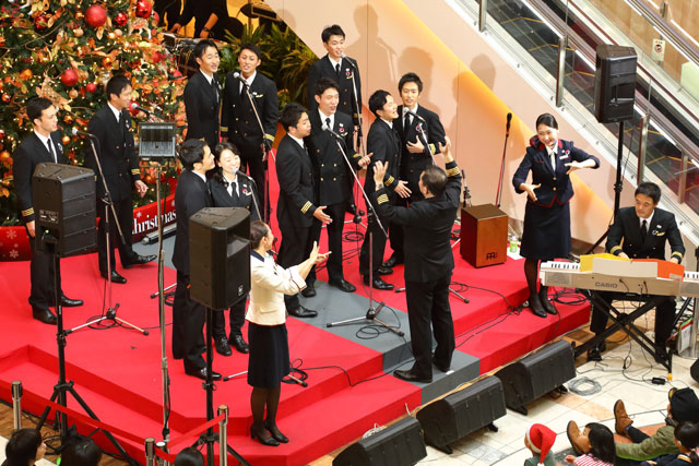 日本航空(JAL/JL、9201)のパイロット有志によるコーラスグループ「JAL空飛ぶ合唱団2018」が12月24日、デビュー以来3回目となるコンサートを羽田空港第1ターミナルで開いた。合唱の前にはパイロットの飲酒問題により、同社が国土交通省から事業改善命令を21日に受けたことをメンバーが謝罪。合唱団を指揮する織田直行機長は、「運航乗務員、客室乗務員をはじめ、日本航空全スタッフで今後も安全運航にまい進してまいります」と誓った。