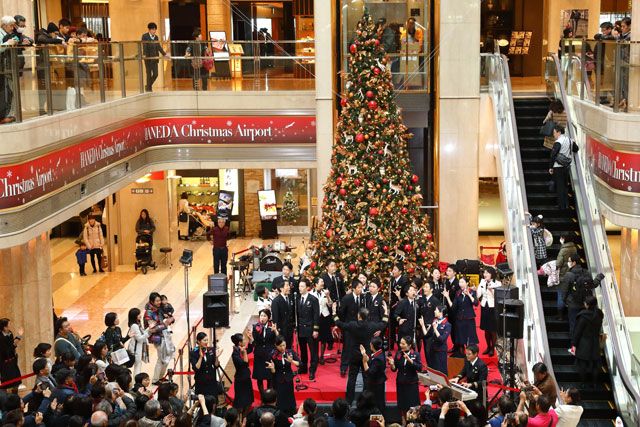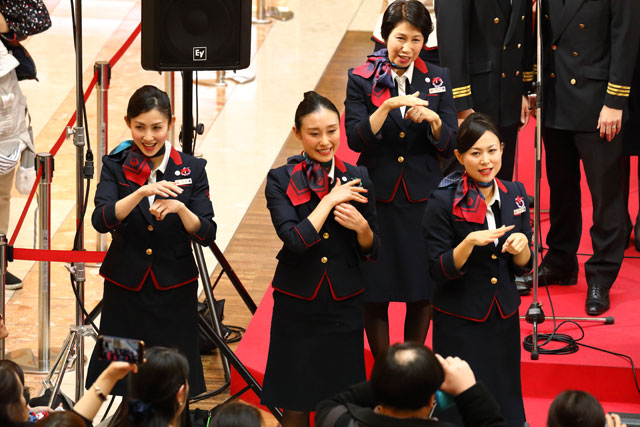 ・JALのCAとパイロット、ミュージックベルと恋ダンス競演 羽田でベルスター演奏会(17年12月23日)