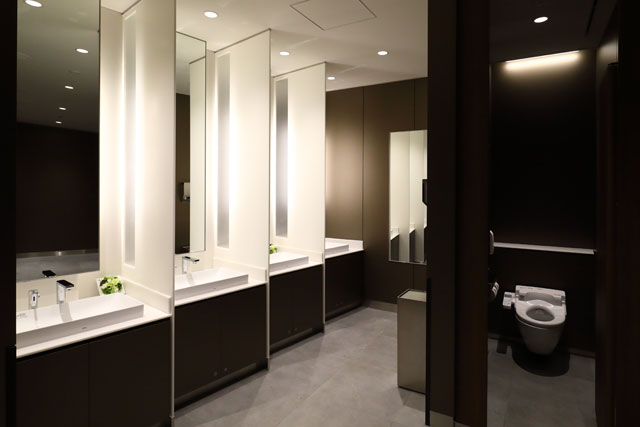 リニューアルオープンした伊丹空港のANAスイートラウンジの化粧室=19年1月30日 PHOTO: Masahiro SATO/Aviation Wire