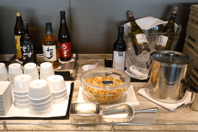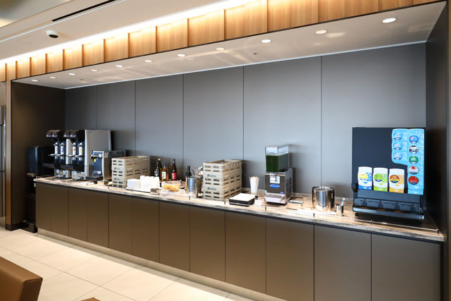 リニューアルオープンした伊丹空港のANAスイートラウンジのドリンクコーナー=19年1月30日 PHOTO: Masahiro SATO/Aviation Wire