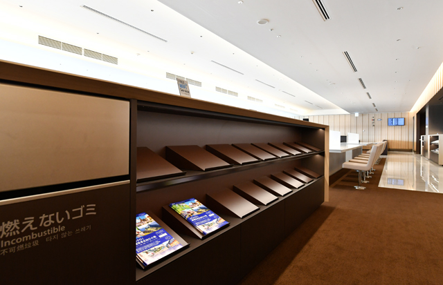 福岡空港にリニューアルオープンしたANAラウンジのマガジンラック=19年2月4日 PHOTO: Tadayuki YOSHIKAWA/Aviation Wire