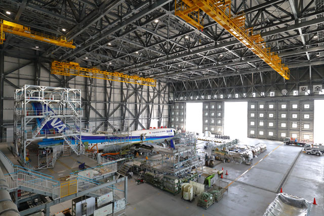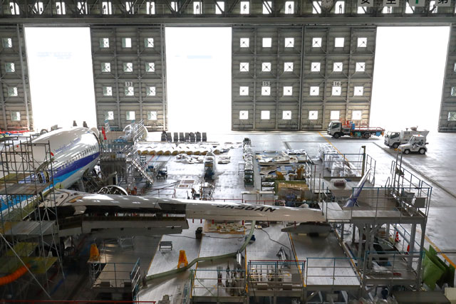 日常の整備のほか、自動車の車検にあたる「重整備」や塗装作業も行える。敷地面積は2万9396平方メートル、格納庫の延床面積は1万7784平方メートルで、大型機が1機入る「大型ドック」と小型機3機が入る「小型ドック」で同時に作業できる。