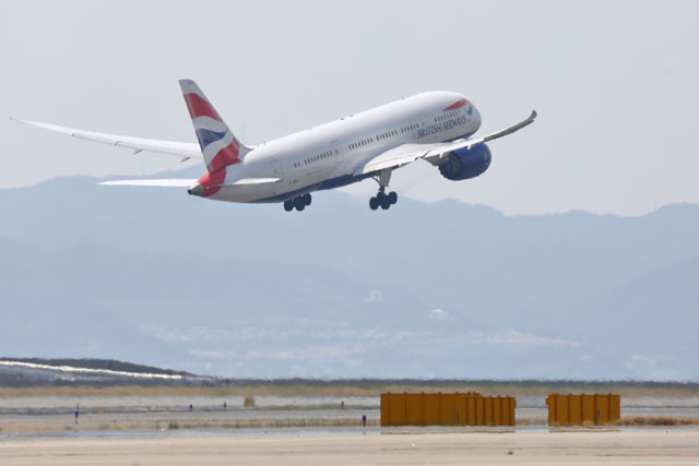 関西空港を離陸するブリティッシュ・エアウェイズのロンドン行き初便BA20便=19年4月1日 PHOTO: Masahiro SATO/Aviation Wire