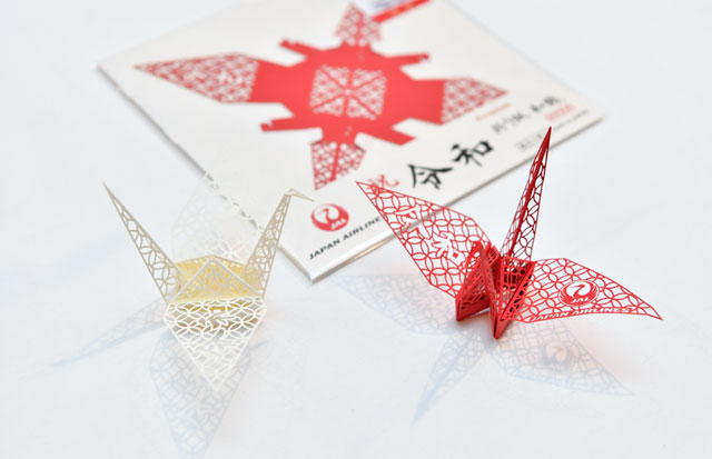 令和祝賀フライトとなったJL501便の乗客に手渡された和鶴=19年5月1日 PHOTO: Tadayuki YOSHIKAWA/Aviation Wire