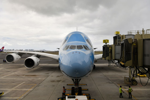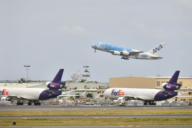 ・ホノルルにA380到着 ANA「空飛ぶウミガメ」ハワイ初飛来、地上施設確認(19年4月18日)