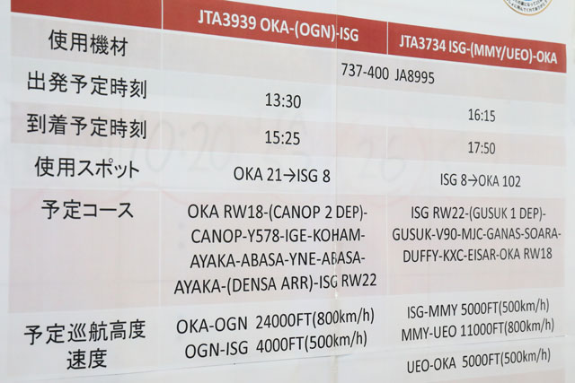 飛行コースは、往路が那覇空港から与那国島へ向かい、島の周辺を遊覧して石垣空港へ着陸。復路は石垣を離陸後、宮古島と久米島周辺を遊覧し、那覇へ戻るルートだった。