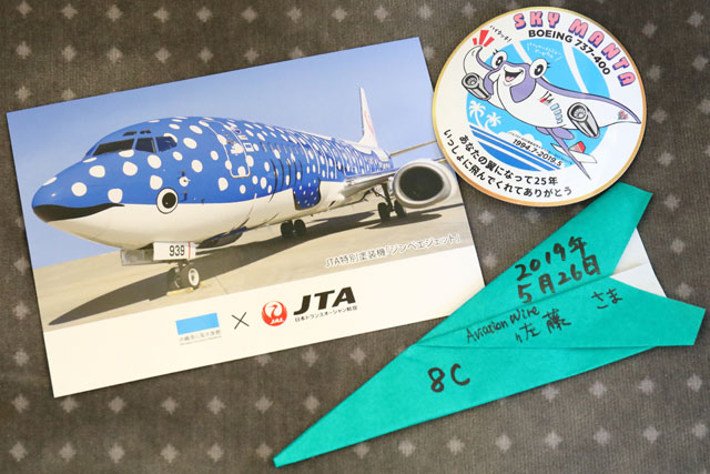 JTAの737-400退役チャーター参加者に配られた記念品=19年5月26日 PHOTO: Masahiro SATO/Aviation Wire