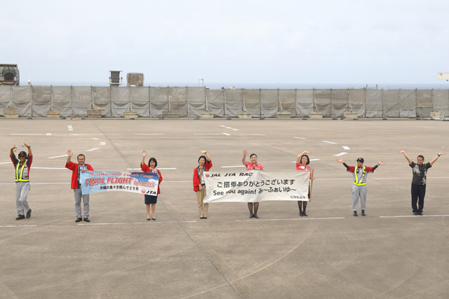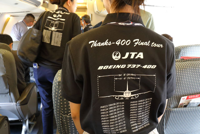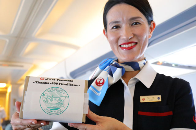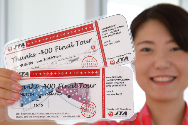 定期便の運航から離脱後の26日に、JTAは退役チャーター「Thanks -400 Final Tour」を開催。那覇と石垣を往復するフライトと、格納庫での記念イベントの2本立てで、全国から熱心なファンが集まった。