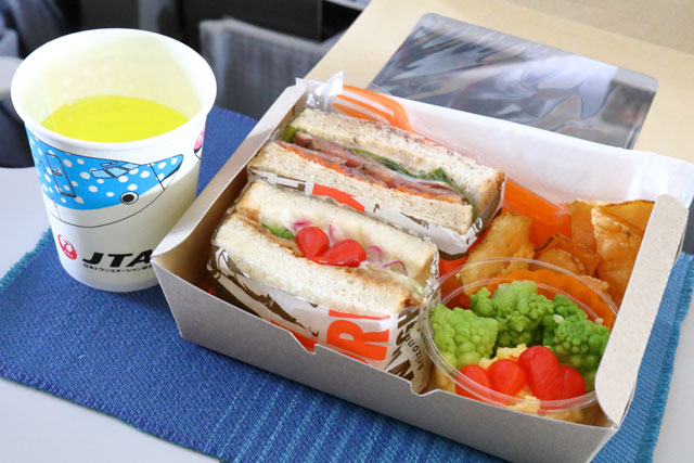 JTAの737-400退役チャーターNU3939便で提供された機内食=19年5月26日 PHOTO: Masahiro SATO/Aviation Wire