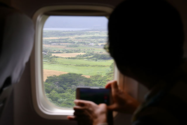 那覇行きNU3734便はイベント主体の往路と趣向を変え、遊覧飛行が中心のフライトだった。石垣空港を離陸する際は、停止状態でエンジンの出力を上げてからブレーキを解除する「スタンディングテイクオフ」を実施。旧空港での離陸を再現した急加速と力強い上昇に、参加者は満足げだった。
