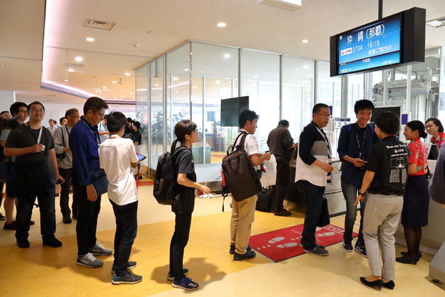 石垣空港では搭乗待合室の中だけではあるものの、参加者は石垣島の土産物を買い求めるなど、短い滞在を満喫していた。
