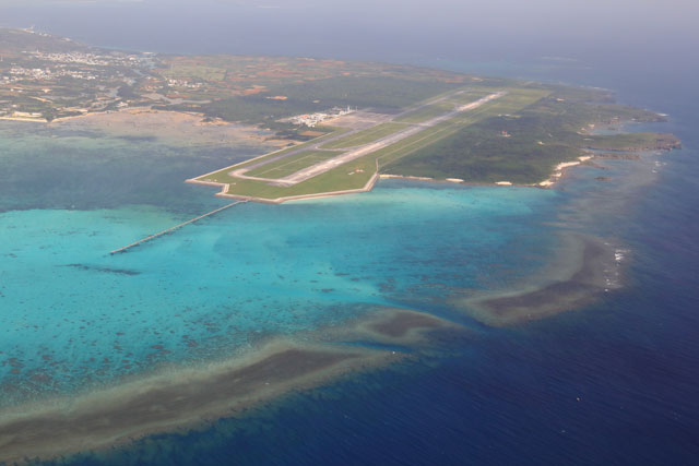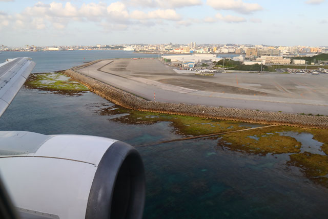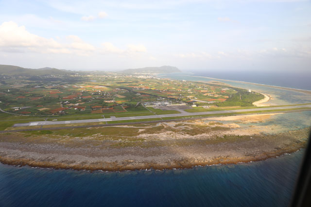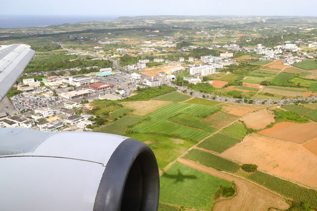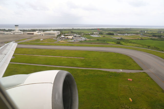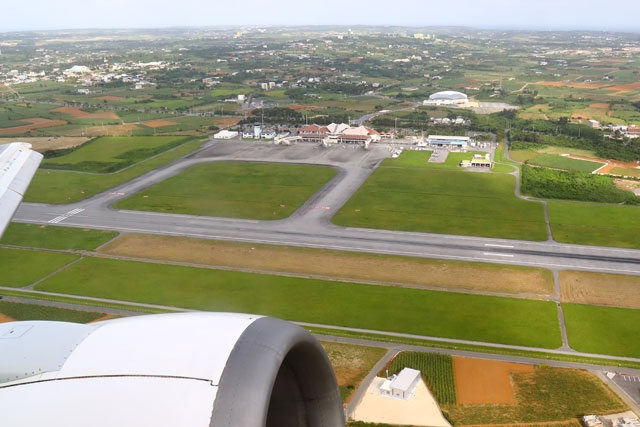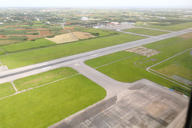 JTAの737-400退役チャーターNU3734便から見た久米島空港=19年5月26日 PHOTO: Masahiro SATO/Aviation Wire