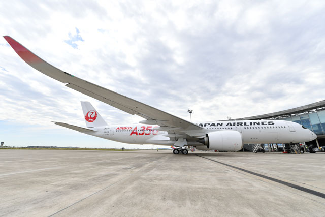 JALは2013年10月7日に、ボーイング777型機の後継機として、A350を最大56機導入すると発表。確定発注は標準型のA350-900が18機、長胴型のA350-1000が13機の計31機で、このほかにオプション(仮発注)で25機購入する契約を結んだ。A350-900は主に国内線用777-200の、A350-1000は長距離国際線用777-300ERの後継となる。初号機は11日付で受領した。