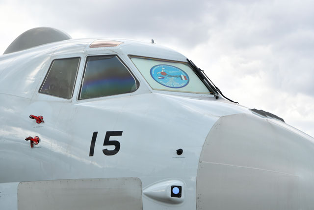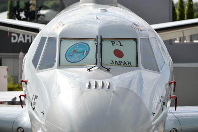 パリ航空ショーの記念ロゴが入ったP-1の日よけ=19年6月15日 PHOTO: Tadayuki YOSHIKAWA/Aviation Wire=19年6月15日 PHOTO: Tadayuki YOSHIKAWA/Aviation Wire