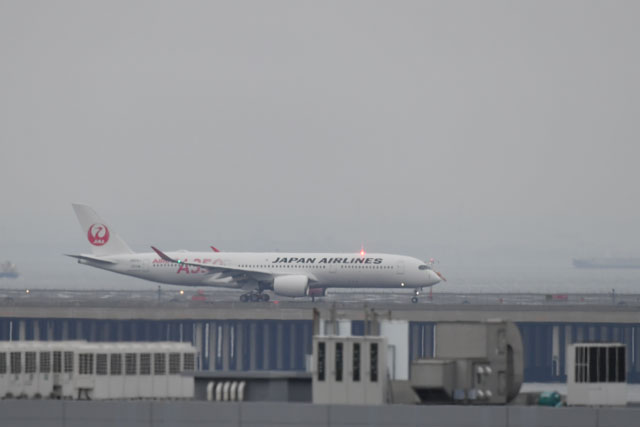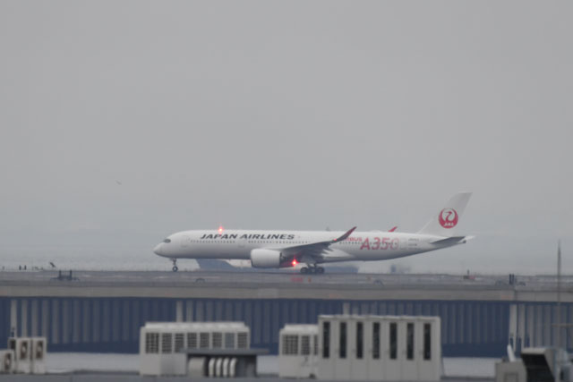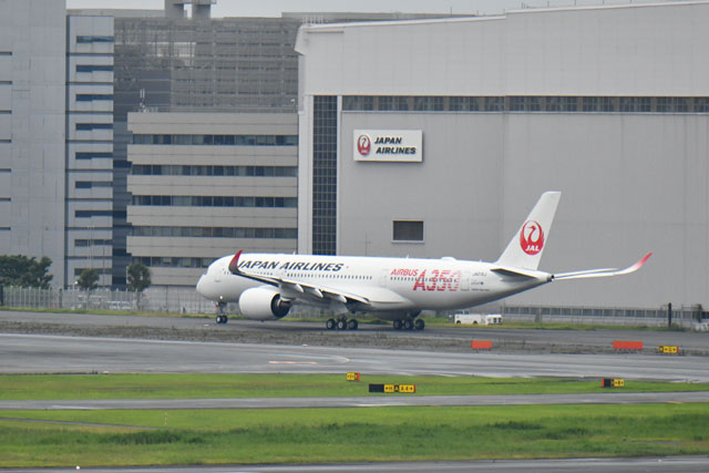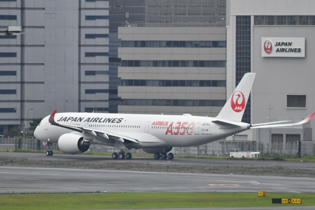 北九州への訓練飛行に向けて羽田のD滑走路へ向かうJALのA350初号機=19年6月29日6時10分 PHOTO: Tadayuki YOSHIKAWA/Aviation Wire