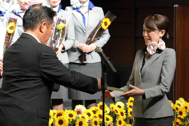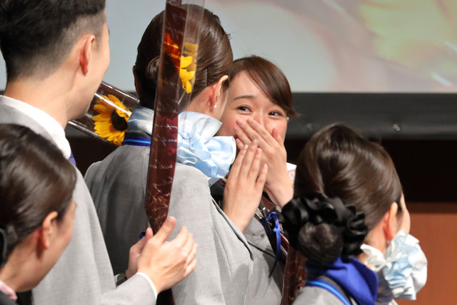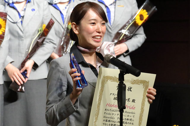 審査の結果、グランプリの城谷さんのほか、準グランプリに国際線旅客サービス部旅客5課の青木唯さんと、国内線旅客サービス部旅客1課の田中彩美さん、審査員特別賞に国内線旅客サービス部旅客2課の佐藤花穂さんが選ばれた。