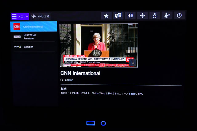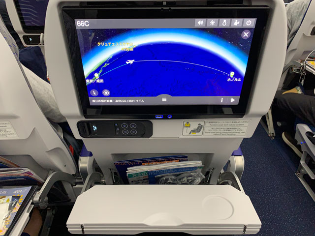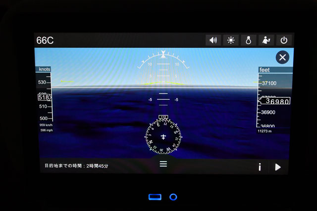画面が13.3インチともなるとかなり大きいが、圧迫感は感じなかった。私は初便の機内ではあまり自席にいなかったが、食事で指が汚れない限りは、操作して気になることもなかった。