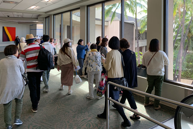 ホノルルのダニエル・K・イノウエ国際空港に到着しANAのA380を撮影する初便の乗客=19年5月24日 PHOTO: Tadayuki YOSHIKAWA/Aviation Wire