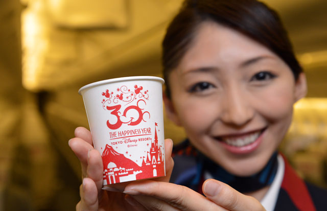 JALは1983年の東京ディズニーランド開園以来のオフィシャルスポンサー。ハピネスエクスプレスには30周年の記念コスチュームを身にまとったミッキーマウスやミニーマウス、ドナルドダック、グーフィー、プルートなど、ディズニーのキャラクターが描かれている。
