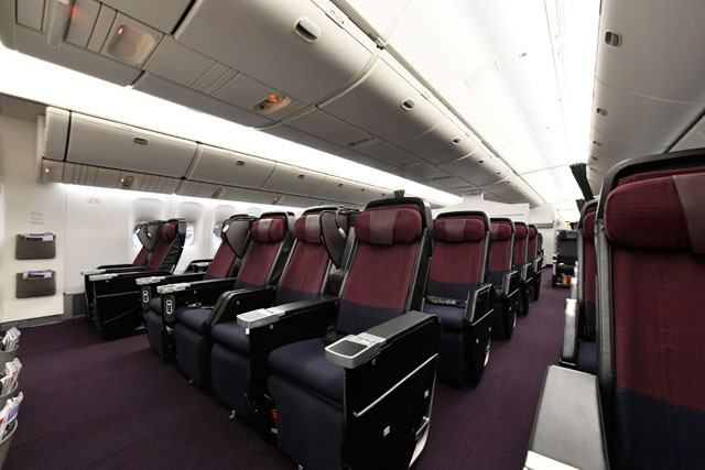 ワインレッドと黒のプレエコ 写真特集・JAL 777-300ER機内デザイン刷新(2)