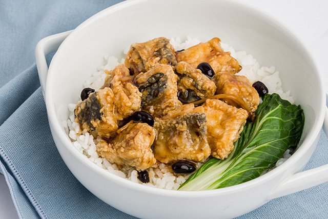 10月にリニューアルするセブパシフィック航空の機内食・黒豆と魚の切り身(同社提供)