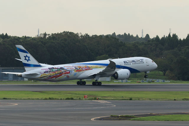 成田に到着した機材はエルアル・イスラエル航空(ELY/LY)のボーイング787-9型機(登録記号4X-EDD)。成田には午前9時47分ごろ着陸した。機体左側にサンフランシスコ、右側にラスベガスが描かれた特別塗装機で、空港周辺ではイスラエルからの特別塗装機を撮影しようと航空ファンが集まった。