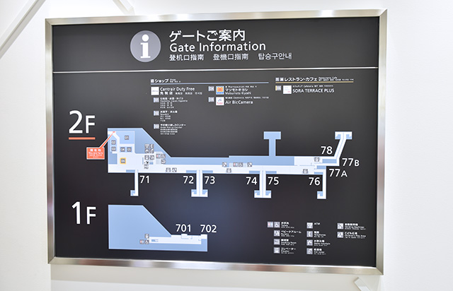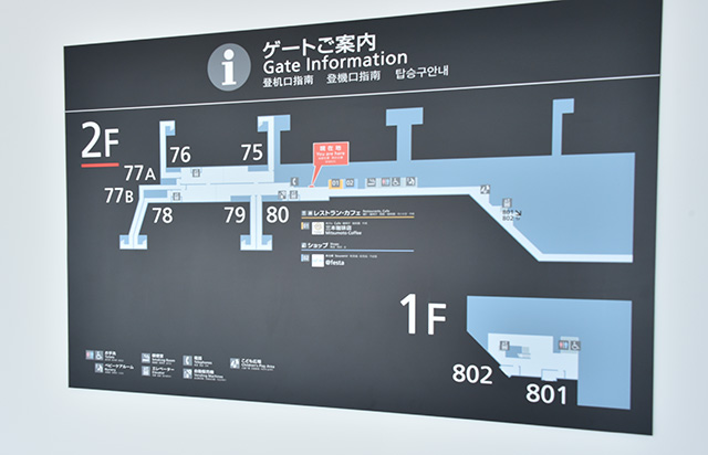 中部空港LCCターミナルの国内線搭乗エリアの案内図=19年9月17日 PHOTO: Yusuke KOHASE/Aviation Wire
