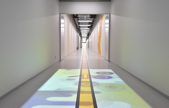 中部空港LCCターミナルの国際線到着口の床にデザインした消費カロリー=19年9月17日 PHOTO: Yusuke KOHASE/Aviation Wire