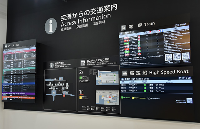 中部空港LCCターミナルの到着ロビーにある各種交通案内=19年9月17日 PHOTO: Yusuke KOHASE/Aviation Wire