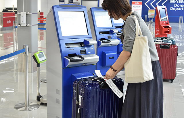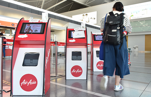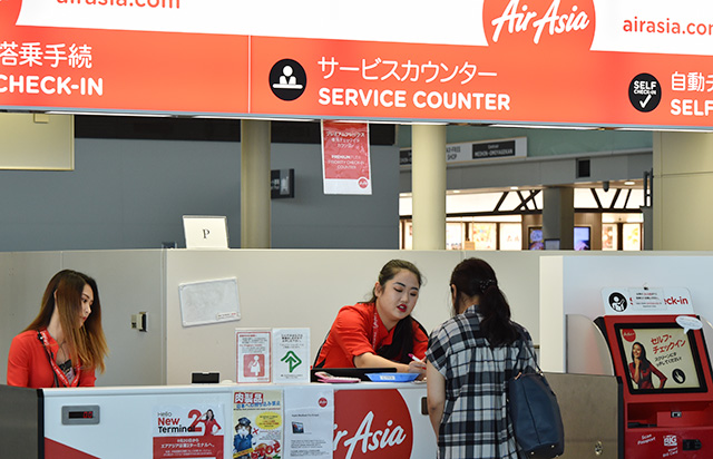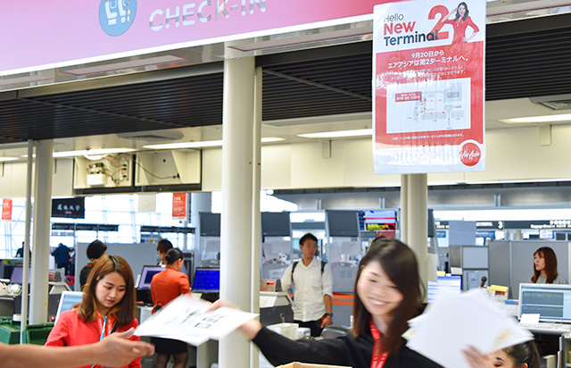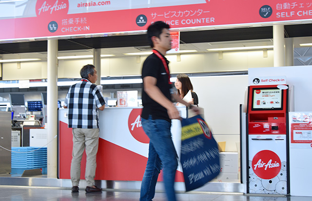 現ターミナルからの最終出発便へのチェックインを進めるエアアジア・ジャパンの利用客=19年9月19日 PHOTO: Yusuke KOHASE/Aviation Wire