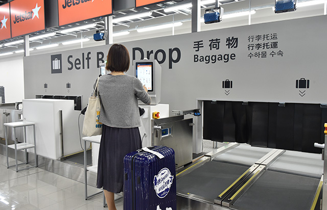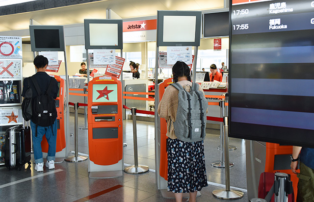 現ターミナルからの最終出発便へのチェックインを進めるジェットスター・ジャパンの国内線利用客=19年9月19日 PHOTO: Yusuke KOHASE/Aviation Wire