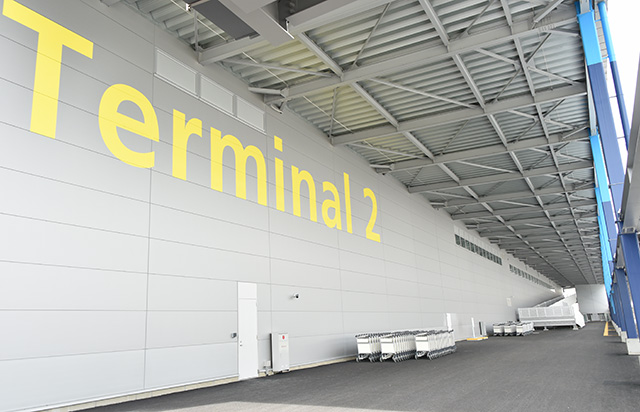 T2では年間旅客数を、国際線300万人と国内線150万人の計450万人を計画。供用開始時は国内5都市へ1日14便、国際線は6都市へ週45便が就航する。