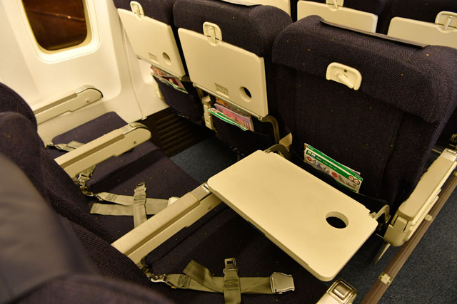 ANAウイングスの737-500のテーブル=19年9月28日 PHOTO: Tadayuki YOSHIKAWA/Aviation Wire