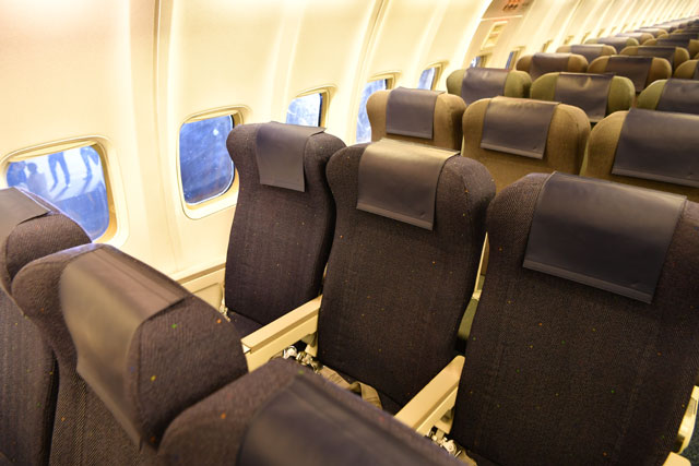 JA305Kは、1998年9月21日就航。機内に入ると、機内で喫煙できた時代のなごりで、シートに就航当時備えられていた灰皿をふさぐ部品もみられた。20年前には同クラス機の中では大きかったオーバーヘッドビン(手荷物収納棚)など、当時を体感できる機内だ。