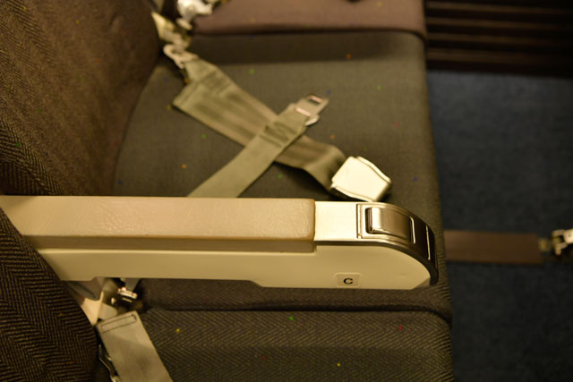 ANAウイングスの737-500のシートに残るアームレストの灰皿跡=19年9月28日 PHOTO: Tadayuki YOSHIKAWA/Aviation Wire