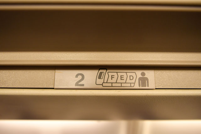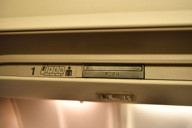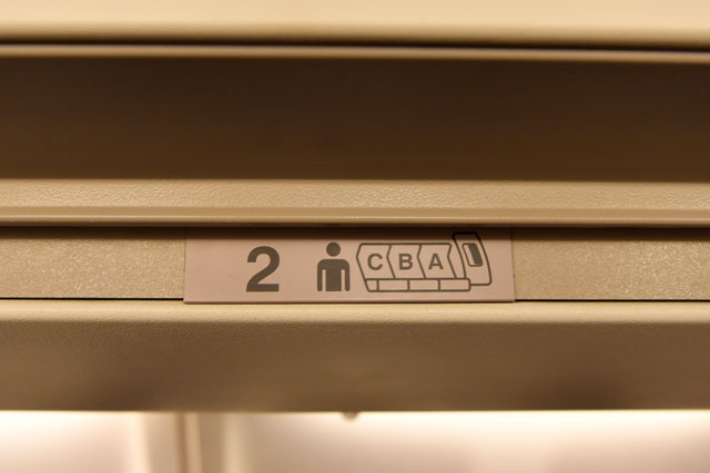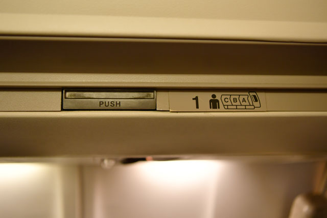 ANAウイングスの737-500のシート番号とオーバーヘッドビンを開くボタン=19年9月28日 PHOTO: Tadayuki YOSHIKAWA/Aviation Wire