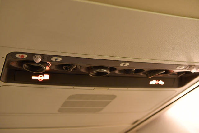 ANAウイングスの737-500の冷風口や読書灯=19年9月28日 PHOTO: Tadayuki YOSHIKAWA/Aviation Wire