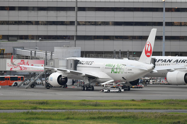 初号機は6月14日に羽田へ到着し、9月1日に就航。現在は羽田-福岡線に1日3往復投入しており、7日は機材繰りの関係で、初めて同路線にA350を2機投入することになった。10月中旬以降は1日6-8往復、2020年2月からは1日10往復に増える計画だ。残る2号機も、まもなく就航する見通し。