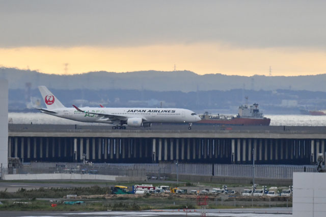 福岡行きJL303便として羽田のD滑走路へ進入するJALのA350-900 3号機=19年10月7日 PHOTO: Tadayuki YOSHIKAWA/Aviation Wire