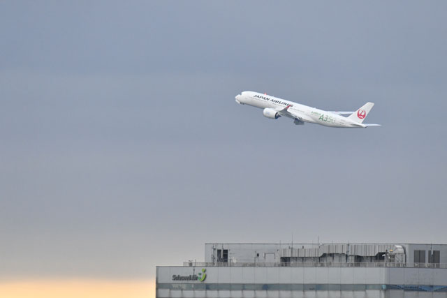 羽田のD滑走路を離陸し福岡へ向かうJALのA350-900 3号機によるJL303便=19年10月7日 PHOTO: Tadayuki YOSHIKAWA/Aviation Wire
