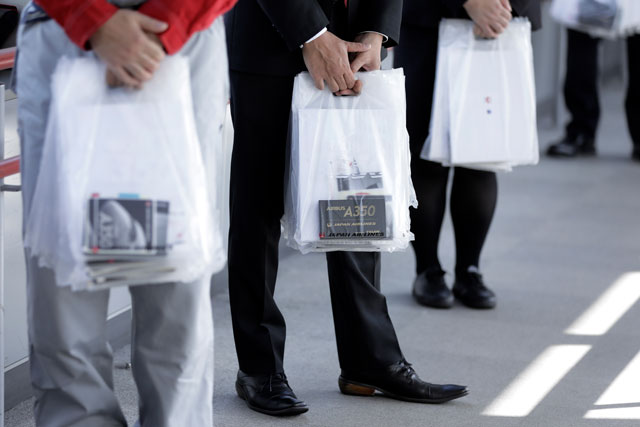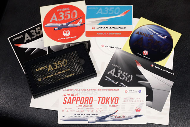 新千歳発のA350初便となる羽田行きJL504便の乗客に配られた記念品=19年10月27日 PHOTO: Kiyoshi OTA/Aviation Wire