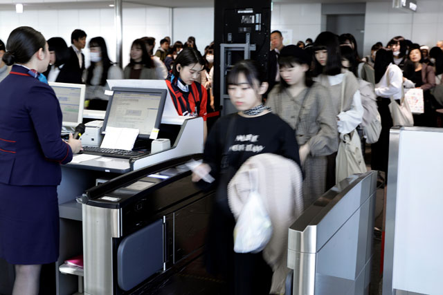 新千歳発のA350初便となる羽田行きJL504便に搭乗する乗客=19年10月27日 PHOTO: Kiyoshi OTA/Aviation Wire