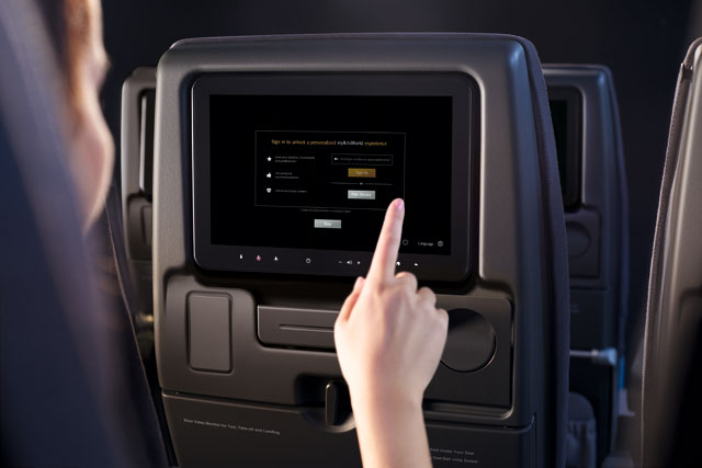 機内エンターテインメントシステム(IFE)は仏タレス製「AVANT」。シンガポール航空のプログラム「クリスワールド」 で1800チャンネル以上の映画、 テレビ番組、 オーディオプログラムやゲームを、直感的に操作しながら楽しめる。 また、通信衛星とWi-Fi機器による機内インターネット接続サービスは、 SITAONAIRのインマルサットを使った高速ブロードバンドサービス「GX Aviation」を採用した。