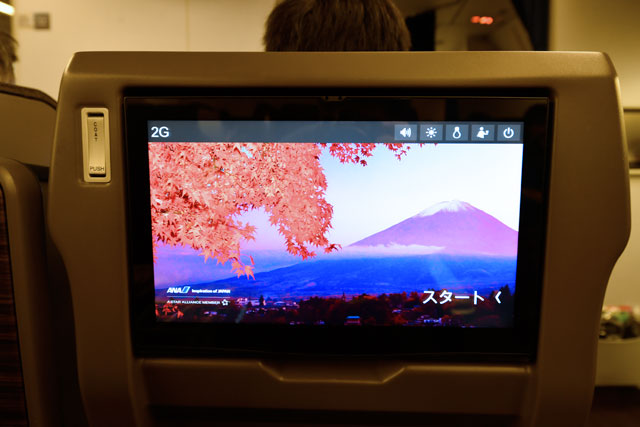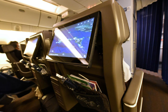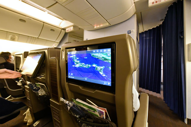 15.6インチのタッチパネル式個人用モニターを完備するANAの777-200ERの国内線新プレミアムクラス=PHOTO: Tadayuki YOSHIKAWA/Aviation Wire