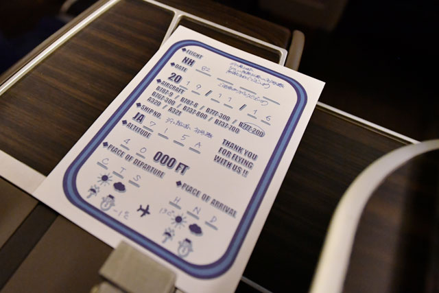 ANAの新プレミアムクラスで配られた搭乗証明書=19年11月16日 PHOTO: Tadayuki YOSHIKAWA/Aviation Wire