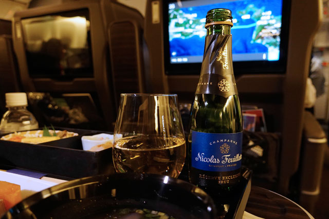 食事は夕食が出る時間帯の便だったため、有名店とのコラボメニューが提供された。札幌発羽田行きは東京・蓮根(はすね。レンコンではない)の懐石料理「よし邑(よしむら)」が監修したメニュー。板橋区出身の私としては、親族の葬式や法事で食べる仕出しの店というイメージが強いため、2006年のリニューアル以降は店のイメージが大きく変わったので、今も不思議な感じがする。シャンパンとともに、おいしくいただいた。